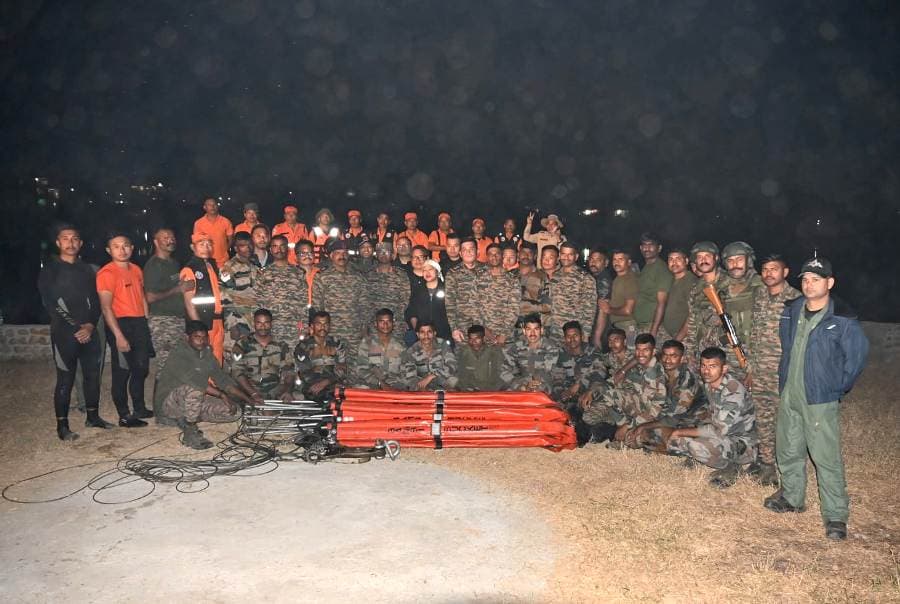 The Indian Army's 3 Engineer Regiment recovers submerged IAF firefighting equipment from lake in Purana Bazar, Dimapur, enabling Dzükou Valley operations.