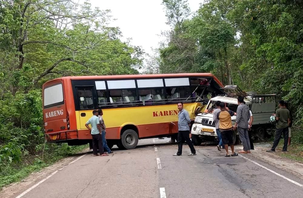 According to reports, the bus (AS-09AC-8781) was heading towards Dolamara from Diphu ISBT, while a Bolero pickup (NL-01-AE-1099) was travelling to Dillai when the accident occurred.