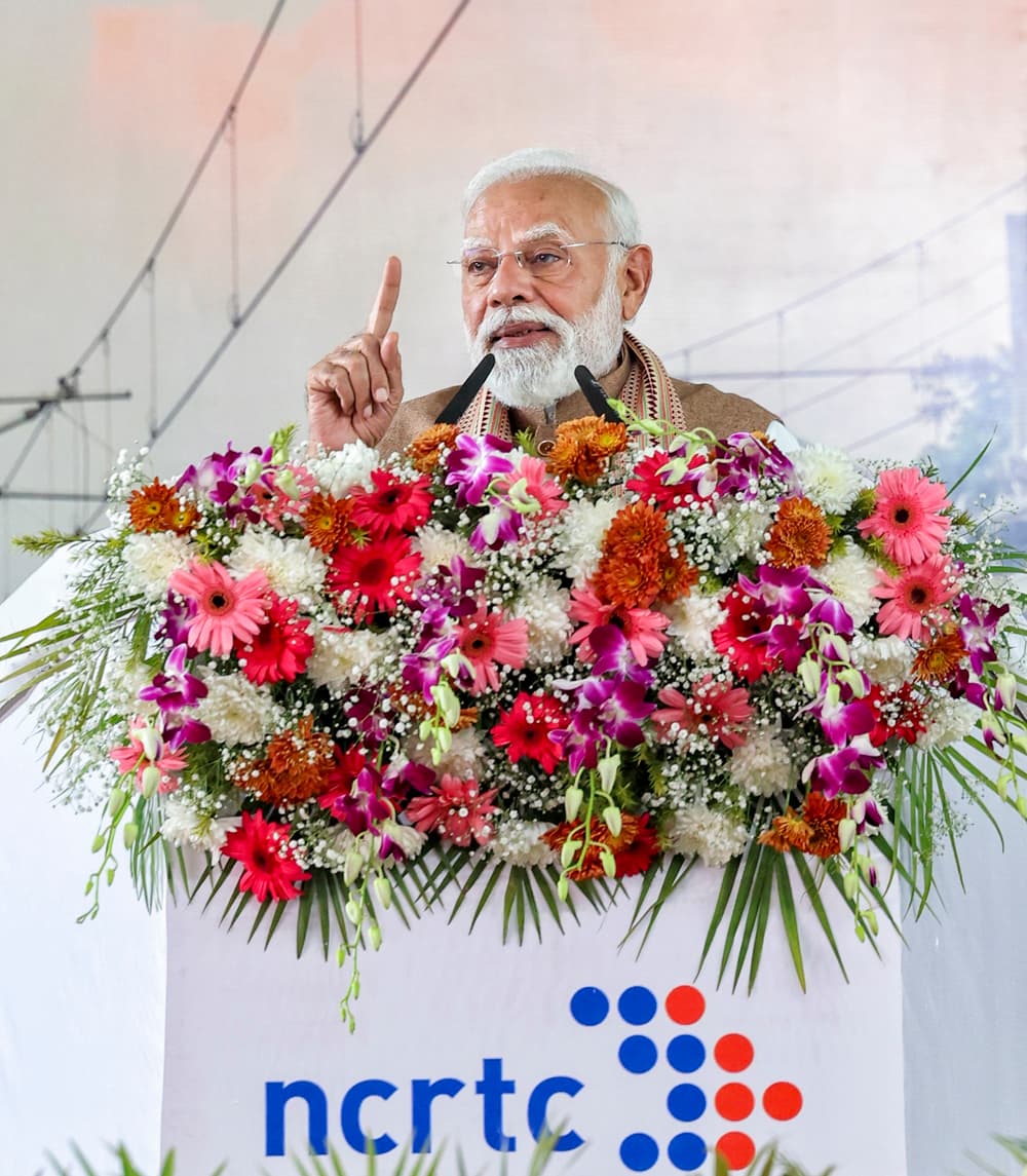MEERUT (UP) — Prime Minister Narendra Modi on Sunday came down heavily on the Congress over its "shirtless" protest at the Artificial Intelligence Summit in Delhi, alleging that the party had turned an international event hosted by the country into an arena for its "gandi aur nangi (dirty and shameless)" politics.