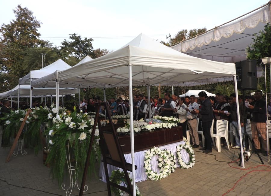 DIMAPUR — A mass funeral service for the five victims of a tragic bus mishap was held at the premises of Chümoukedima Ao Baptist Arogo on Sunday. The victims lost their lives when a bus met with an accident at 10th mile area in Kohima district on the night of January 31.