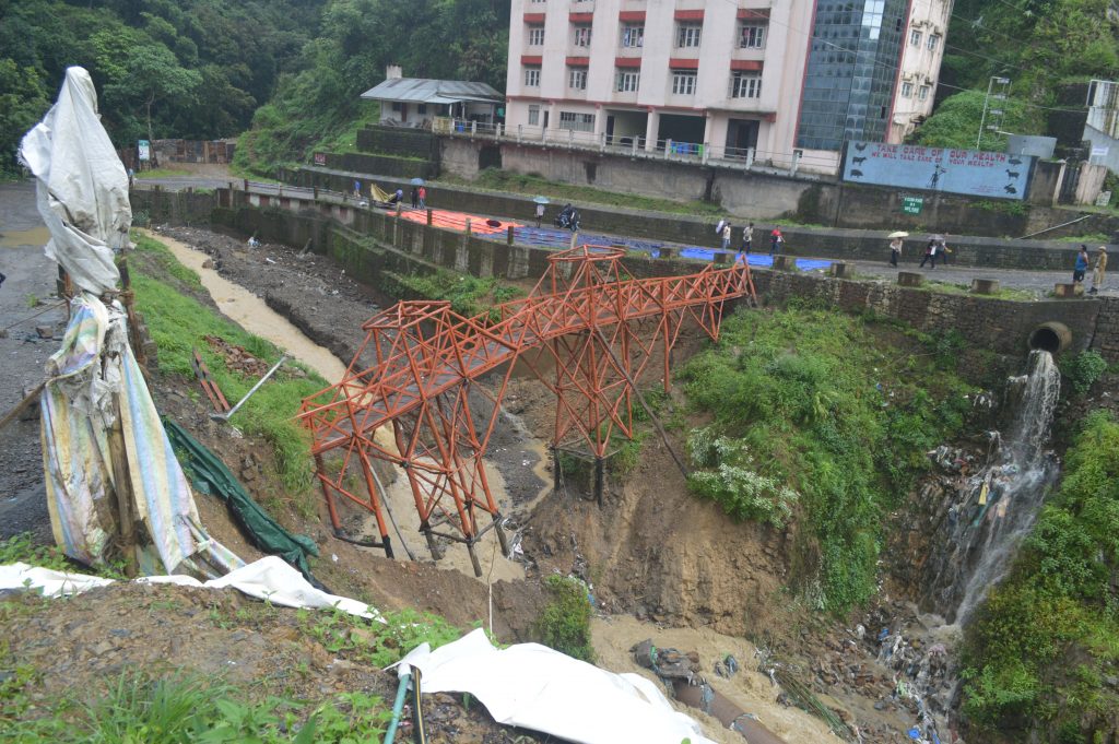 A view of the Sanuorü bypass, on the verge of collapse, during the recent monsoon rains in Kohima.[/caption]