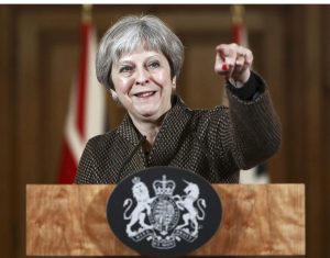 Britain's Prime Minister Theresa May gestures during a press conference in 10 Downing Street, London, Saturday, April 14, 2018. British Prime Minister Theresa May says the need to act quickly and protect Äúoperational securityÄù led her to strike Syria without a prior vote in Parliament.AP/PTI[/caption]