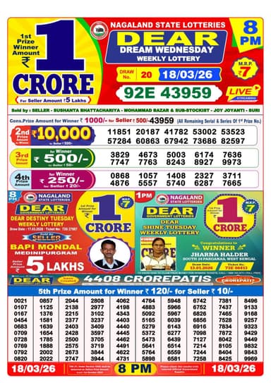 Here is the official result of the Nagaland State Lottery Sambad Dear Dream Wednesday at 8 pm on March 18, 2026