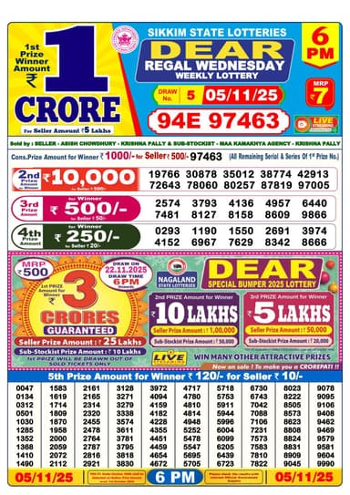Here is the official result of the Nagaland State Lottery Sambad Dear Regal Wednesday at 6 pm on November 5, 2025