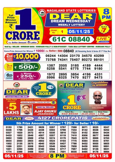 Here is the official result of the Nagaland State Lottery Sambad Dear Dream Wednesday at 8 pm on November 5, 2025