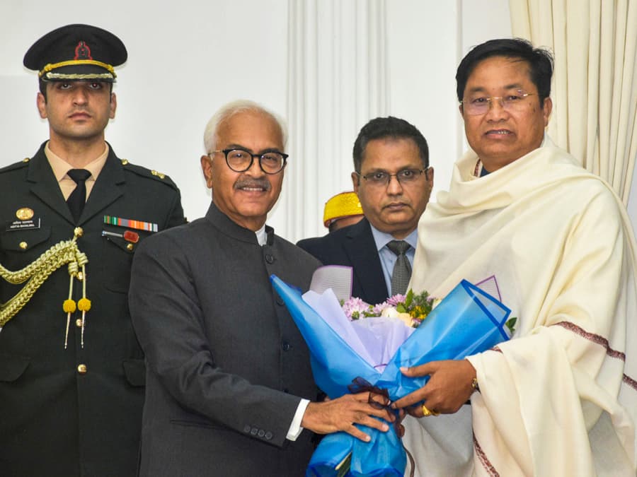 BJP MLA Nemcha Kipgen, who belongs to the Kuki community, and Naga People's Front legislator L Dikho took oath as the deputy chief ministers of Manipur.