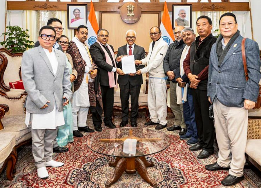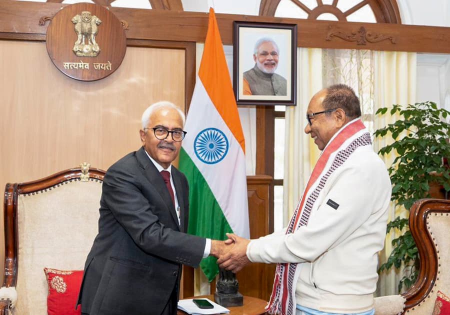Khemchand, in a post on social media, said, "Pleased to stake claim to form the new government before the Hon’ble Governor, Shri Ajay Kumar Bhalla Ji, at Lok Bhavan today, following my arrival from New Delhi, in the august presence of BJP National General Secretary, Shri Tarun Chugh Ji, and BJP Northeast Coordinator, Shri Sambit Patra Ji."
