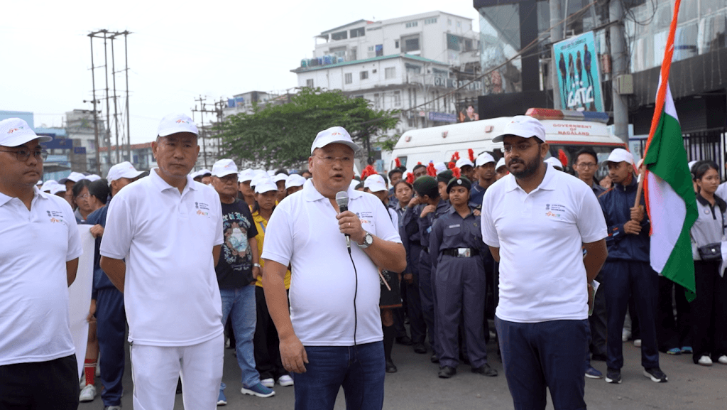 Zunheboto: In Zunheboto, the district administration, under the Ministry of Youth Affairs and Sports, organised a padayatra at Amphiboto AOC Junction. The programme was chaired by Nodal Officer and EAC (HQ) Tsoinchu Sangtam, with Deputy Commissioner Dharam Raj as the special guest.